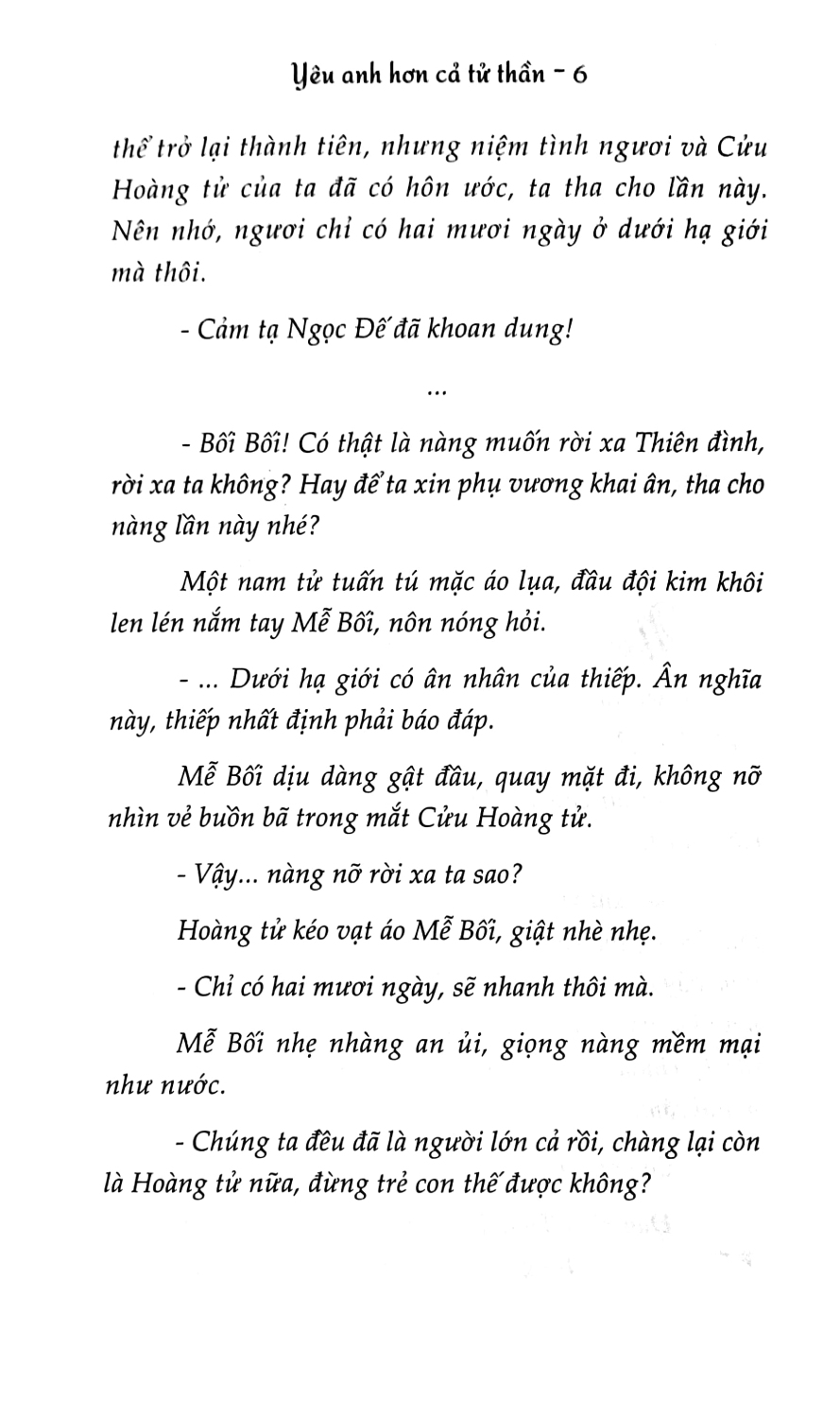 Trong khi Cửu Hoàng Tử lưu luyến thì Mễ Bối lại coi hai mươi ngày xuống trần là cơ hội để nàng báo đáp ân nghĩa với ân nhân Mạc Ngôn Hy.